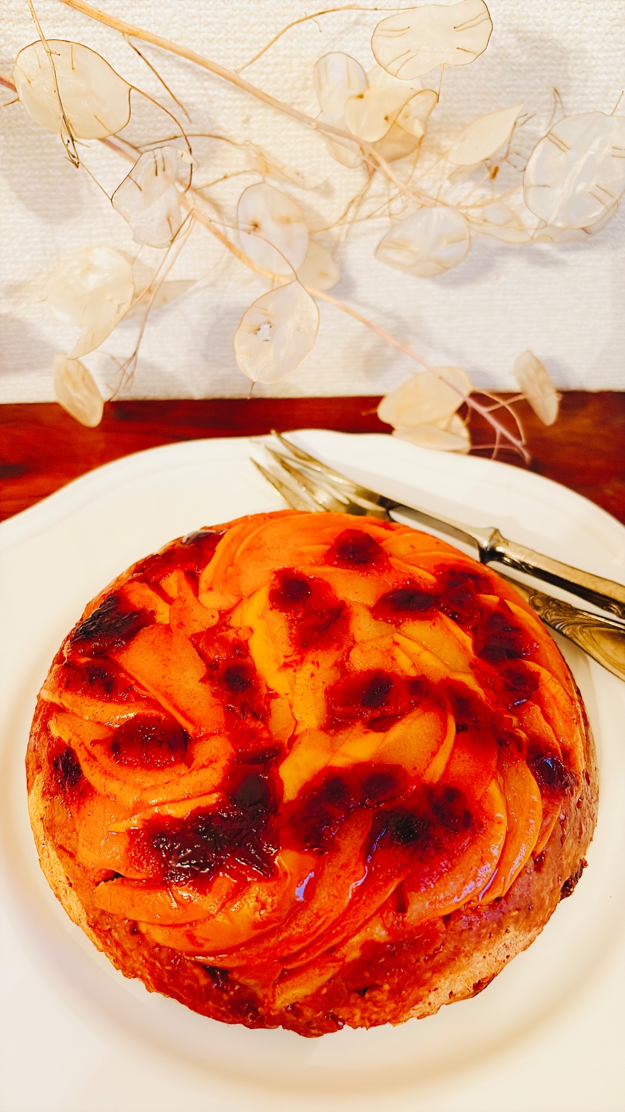 ブラックペッパー などのスパイスを生地に練り込み トップには予めラム酒とレモンで煮詰めた洋梨を敷き詰めました トロンとしたオリエンタルな薫りの洋梨は今が旬!