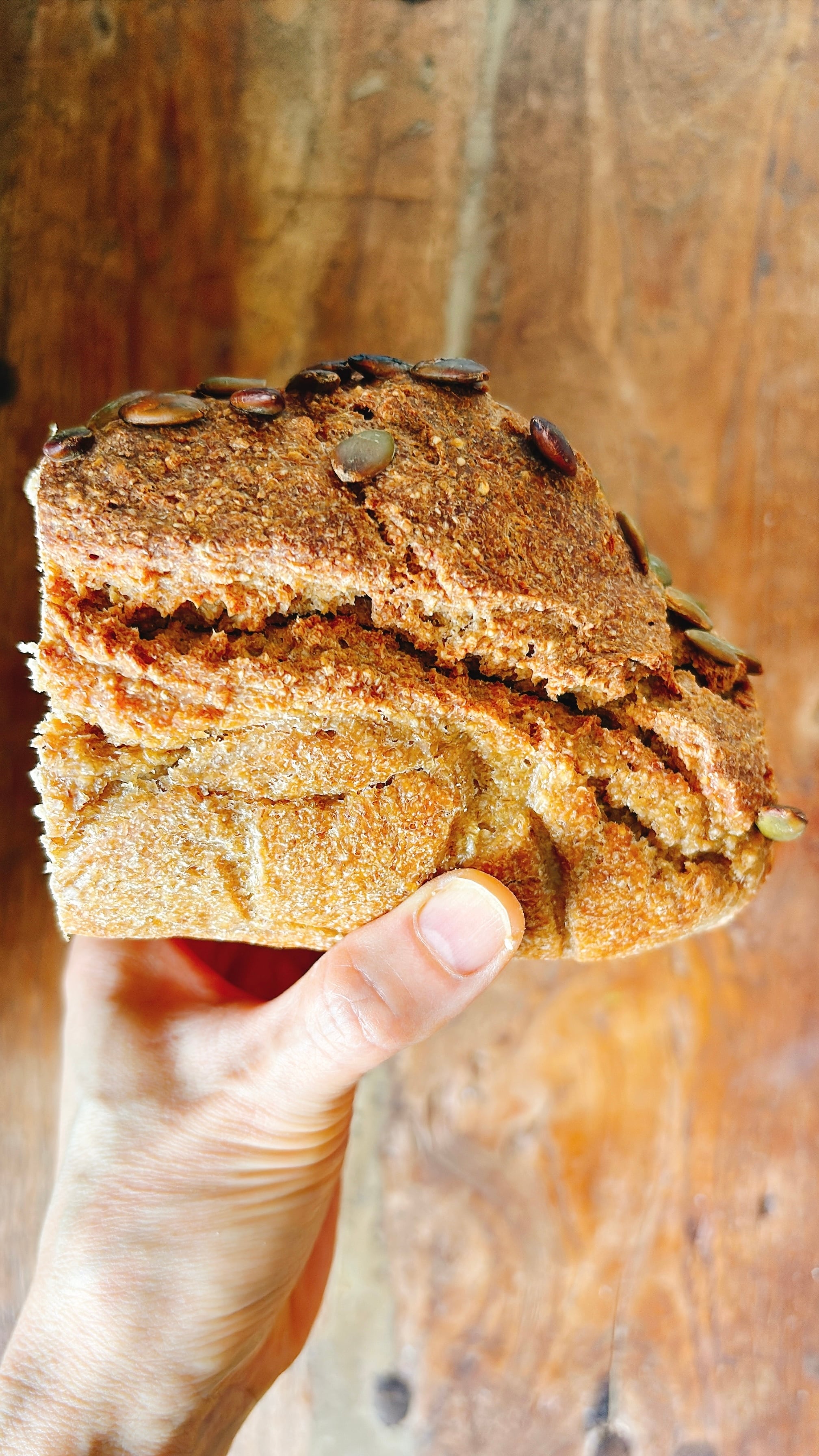 ・オーツ・玄米粉・ホワイトソルガム・ホワイトチアシード・酒粕・みりん粕・塩麹・ドライ無花果・ドライプルーン・生くるみ・いちご・ココナッツ・生パンプキンシード・サイリウムハスク・自然塩・ラム・レモン